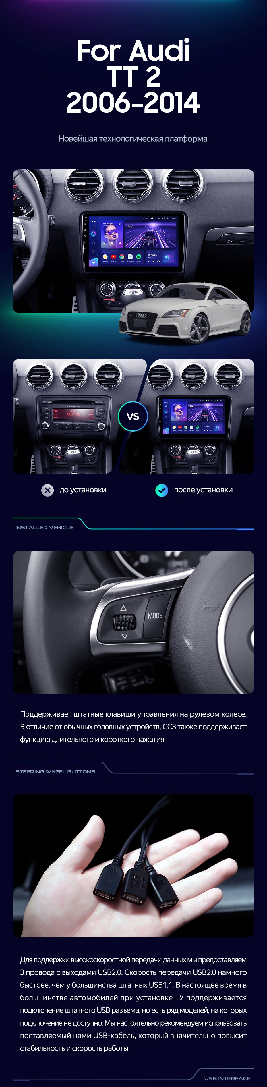 Штатная магнитола Teyes CC3 2K 360 6/128 Audi TT 2 (2006-2014) (13") - купить всего за 63 800 руб. в интернет-магазине в Волгограде Teyes.com.ru. ✓ Самый лучший выбор мультимедиа ✓ Лучшая замена штатному ГУ ✓ Тел. +7 (800) 775-31-74