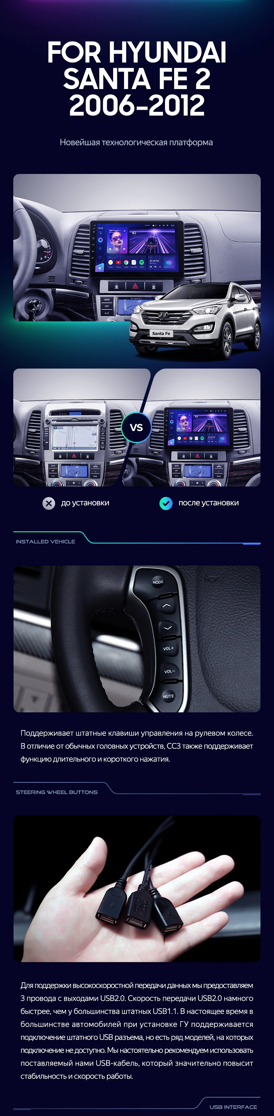 Штатная магнитола Teyes CC3 2K 360 6/128 Hyundai Santa Fe 2 (2006-2012) (13") - купить всего за 50 960 руб. в интернет-магазине в Волгограде Teyes.com.ru. ✓ Самый лучший выбор мультимедиа ✓ Лучшая замена штатному ГУ ✓ Тел. +7 (800) 775-31-74