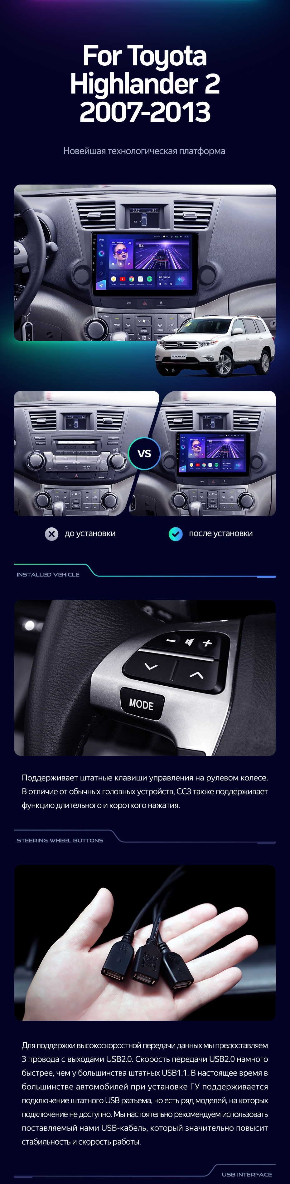 Штатная магнитола Teyes CC3 2K 360 6/128 Toyota Highlander 2 XU40 (2007-2013) F2 10" - купить всего за 55 400 руб. в интернет-магазине в Волгограде Teyes.com.ru. ✓ Самый лучший выбор мультимедиа ✓ Лучшая замена штатному ГУ ✓ Тел. +7 (800) 775-31-74