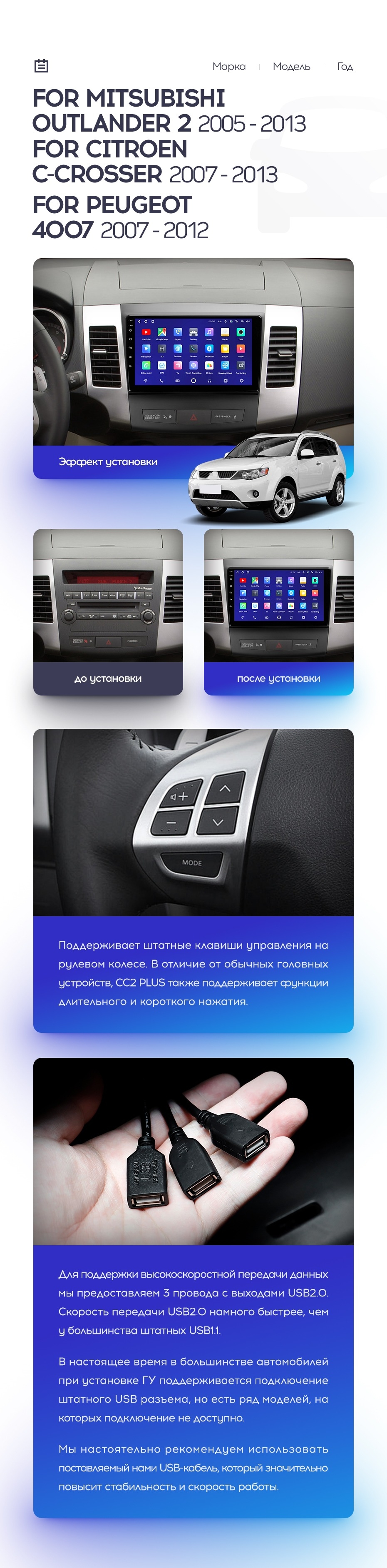 | Дополнительные аксессуары | USB-видеорегистратор, TPMS, передние парктроники, диагностический адаптер OBD | USB-видеорегистратор, TPMS, передние парктроники, диагностический адаптер OBD | USB-видеорегистратор, TPMS |