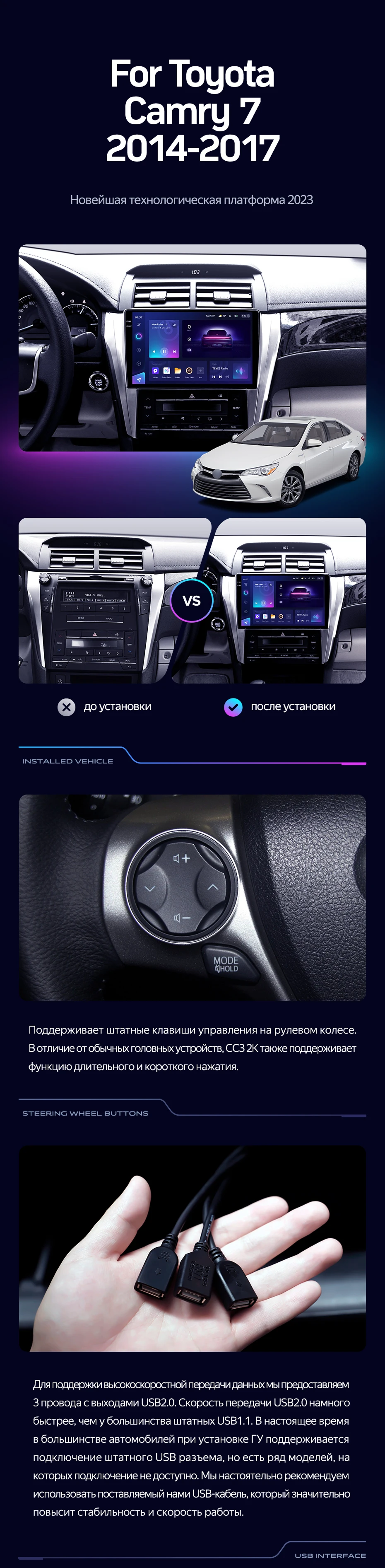 Штатная магнитола Teyes CC3 2K 4/32 Toyota Camry 7 XV 50 55 (2014-2017) (11") F4 - купить всего за 40 500 руб. в интернет-магазине в Волгограде Teyes.com.ru. ✓ Самый лучший выбор мультимедиа ✓ Лучшая замена штатному ГУ ✓ Тел. +7 (800) 775-31-74