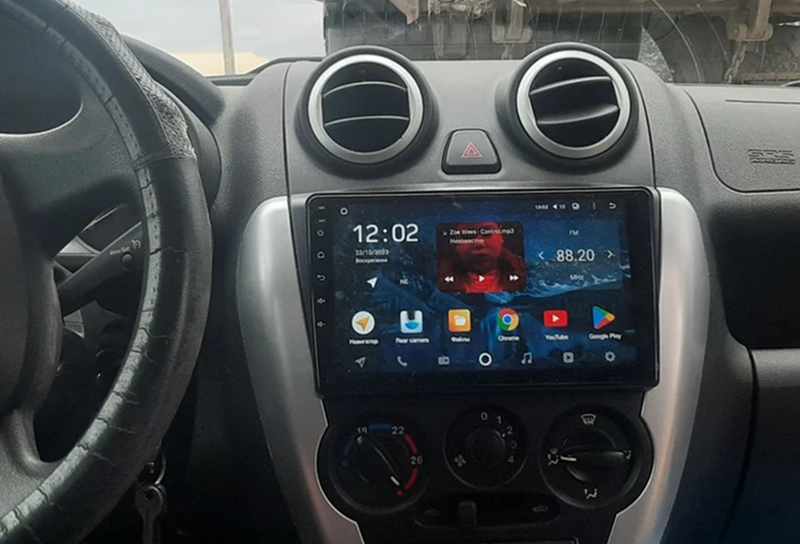 Защитное стекло 2,5D имеет слегка скругленные грани. Эта особенность делает его практически незаметным в районе краев экрана магнитолы, где он ограничен рамками корпуса.