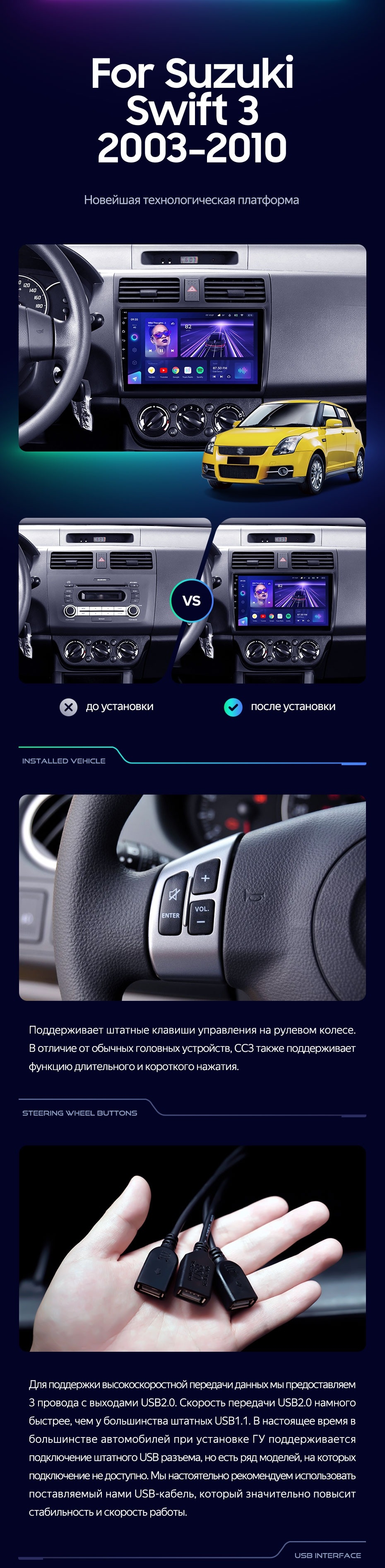 Штатная магнитола Teyes CC3 4/32 Suzuki Swift 3 (2003-2010) - купить всего за 39 650 руб. в интернет-магазине в Волгограде Teyes.com.ru. ✓ Самый лучший выбор мультимедиа ✓ Лучшая замена штатному ГУ ✓ Тел. +7 (800) 775-31-74