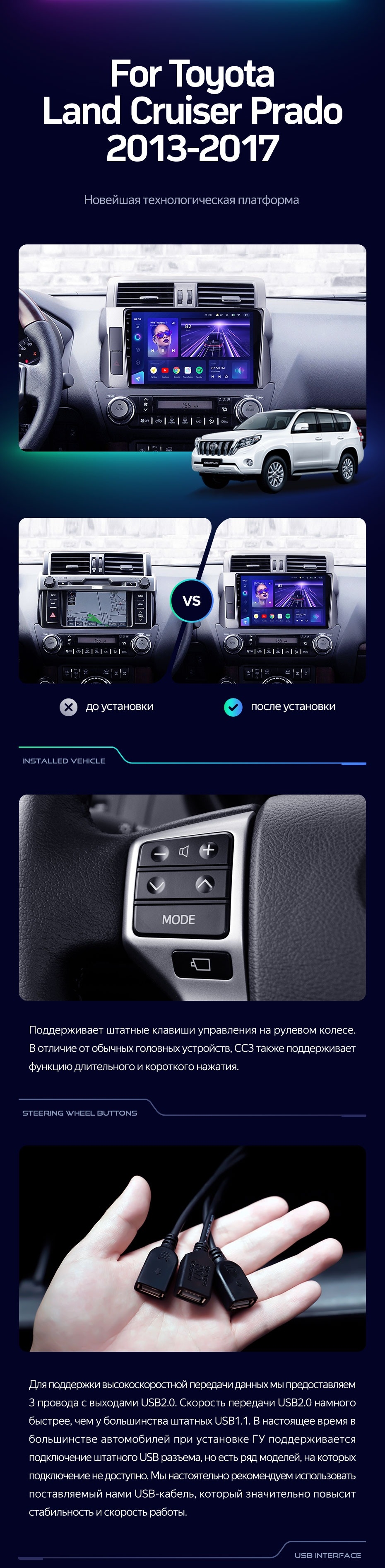 Штатная магнитола Teyes CC3 6/128 Toyota Land Cruiser Prado 150 (2013-2017) - купить всего за 46 000 руб. в интернет-магазине в Волгограде Teyes.com.ru. ✓ Самый лучший выбор мультимедиа ✓ Лучшая замена штатному ГУ ✓ Тел. +7 (800) 775-31-74