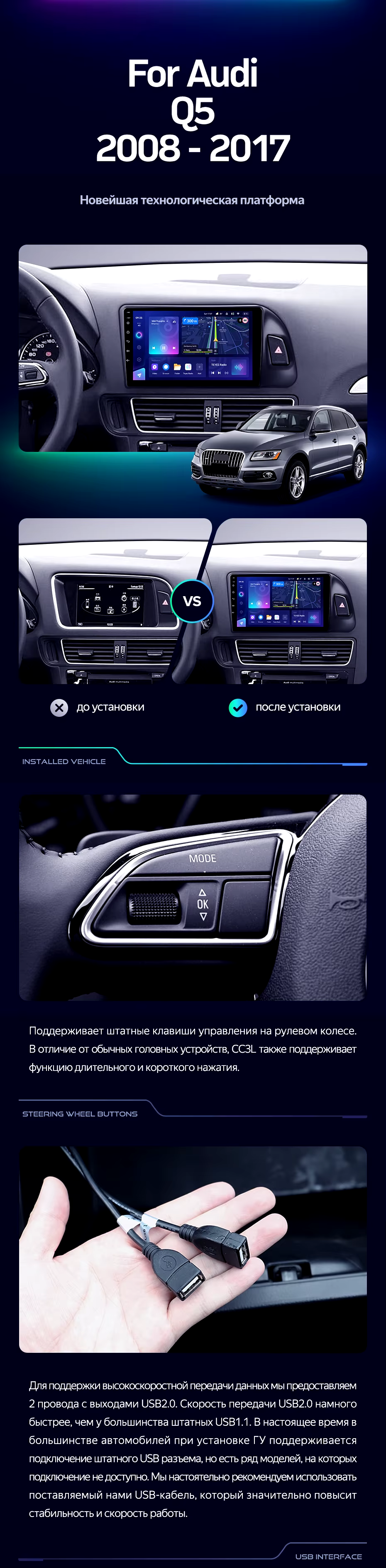 Штатная магнитола Teyes CC3L 4/32 Audi Q5 8R (2008-2017) Тип-B - купить всего за 28 300 руб. в интернет-магазине в Волгограде Teyes.com.ru. ✓ Самый лучший выбор мультимедиа ✓ Лучшая замена штатному ГУ ✓ Тел. +7 (800) 775-31-74