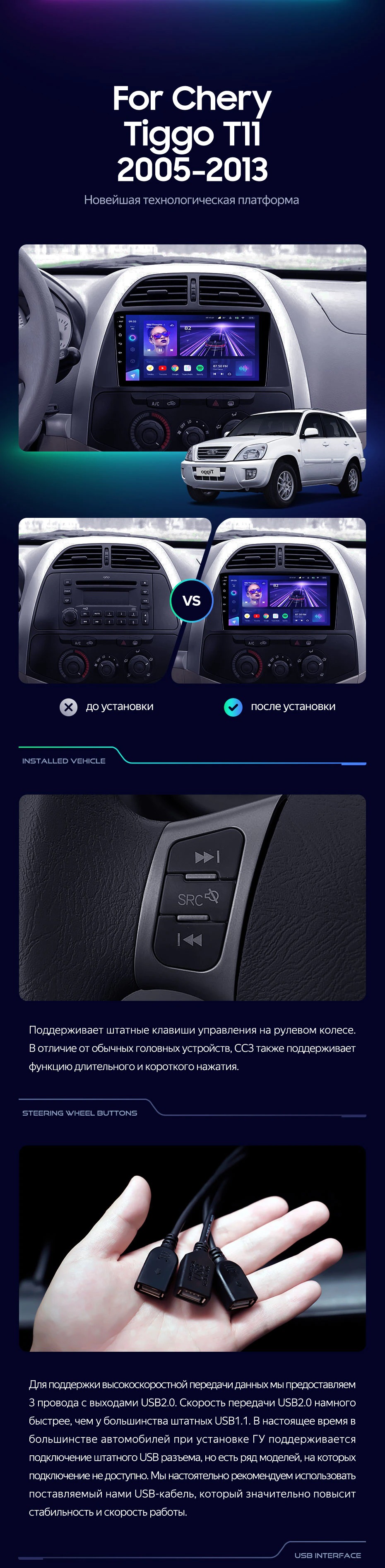 Штатная магнитола Teyes CC3L 4/32 Chery Tiggo T11 1 (2005-2013) - купить всего за 27 600 руб. в интернет-магазине в Волгограде Teyes.com.ru. ✓ Самый лучший выбор мультимедиа ✓ Лучшая замена штатному ГУ ✓ Тел. +7 (800) 775-31-74
