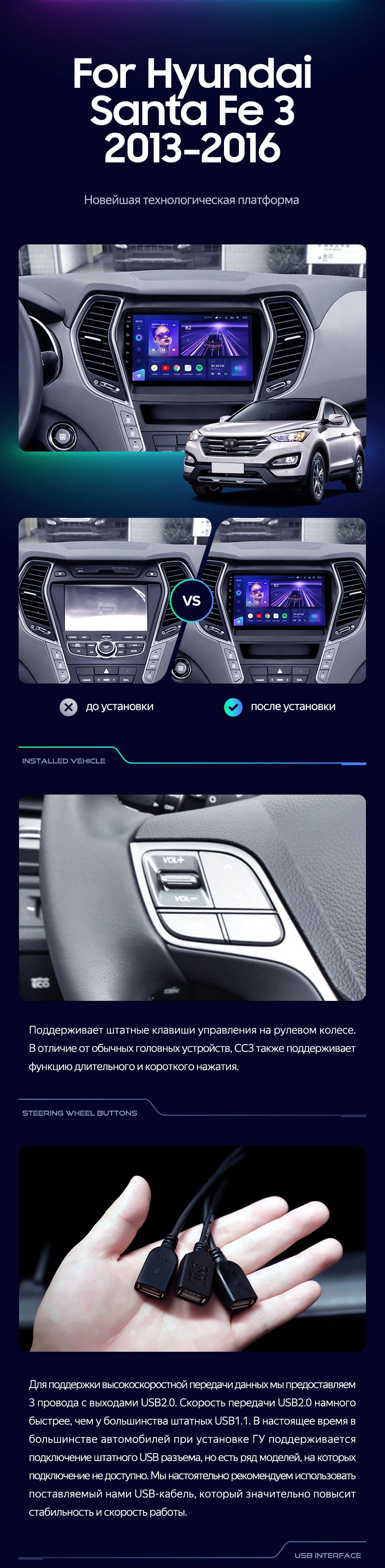 Штатная магнитола Teyes CC3L 4/32 Hyundai Santa Fe 3 (2013-2016) Тип-B - купить всего за 29 000 руб. в интернет-магазине в Волгограде Teyes.com.ru. ✓ Самый лучший выбор мультимедиа ✓ Лучшая замена штатному ГУ ✓ Тел. +7 (800) 775-31-74
