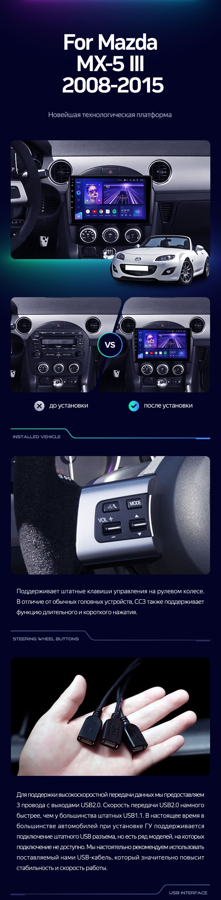 Штатная магнитола Teyes CC3L 4/32 Mazda MX-5 (2008-2015) - купить всего за 25 900 руб. в интернет-магазине в Волгограде Teyes.com.ru. ✓ Самый лучший выбор мультимедиа ✓ Лучшая замена штатному ГУ ✓ Тел. +7 (800) 775-31-74
