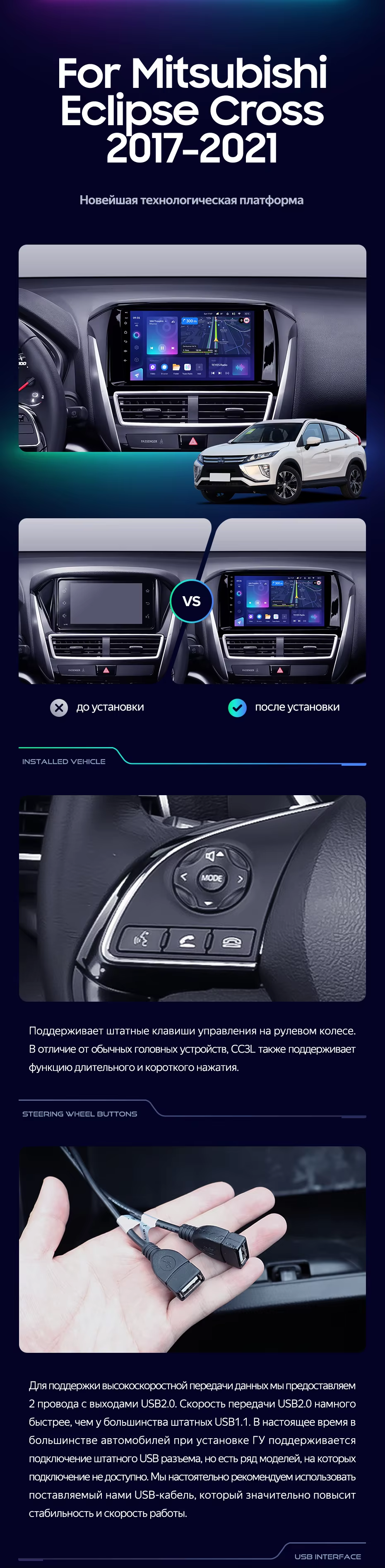 Штатная магнитола Teyes CC3L 4/32 Mitsubishi Eclipse Cross 1 (2017-2021) F1 - купить всего за 24 200 руб. в интернет-магазине в Волгограде Teyes.com.ru. ✓ Самый лучший выбор мультимедиа ✓ Лучшая замена штатному ГУ ✓ Тел. +7 (800) 775-31-74