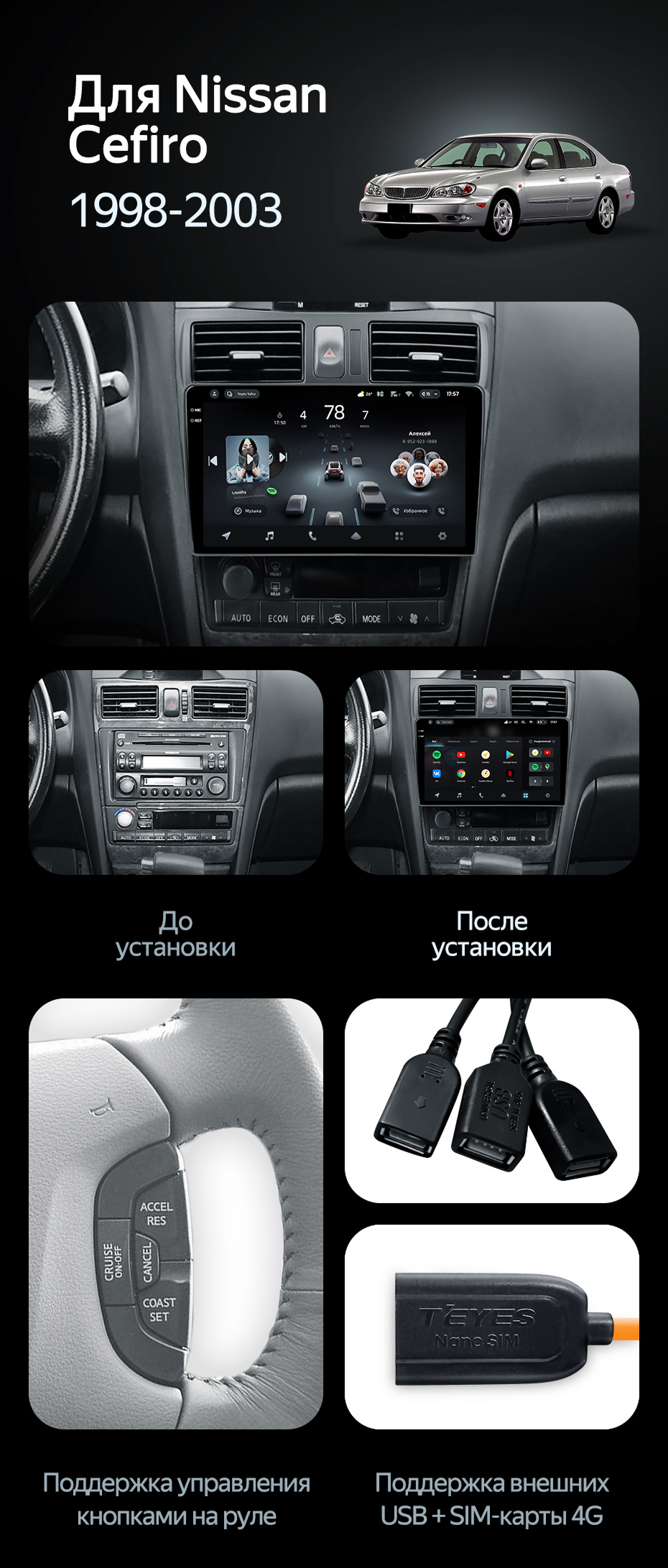 Штатная магнитола Teyes CC3L 4/32 Nissan Cefiro 3 A33 (1998-2003) F2 - купить всего за 23 600 руб. в интернет-магазине в Волгограде Teyes.com.ru. ✓ Самый лучший выбор мультимедиа ✓ Лучшая замена штатному ГУ ✓ Тел. +7 (800) 775-31-74