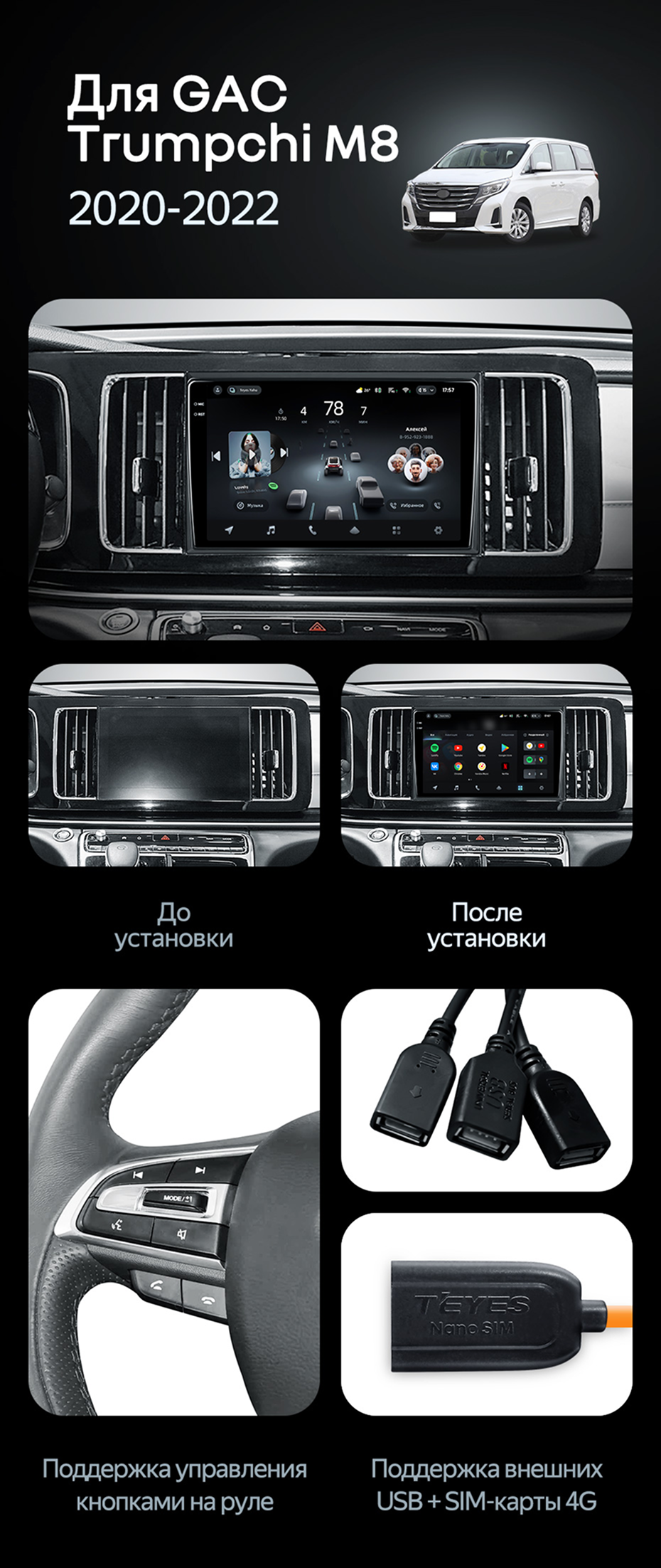 Штатная магнитола Teyes CC3L 4/64 GAC Trumpchi M8 (2020-2022) - купить всего за 27 800 руб. в интернет-магазине в Волгограде Teyes.com.ru. ✓ Самый лучший выбор мультимедиа ✓ Лучшая замена штатному ГУ ✓ Тел. +7 (800) 775-31-74