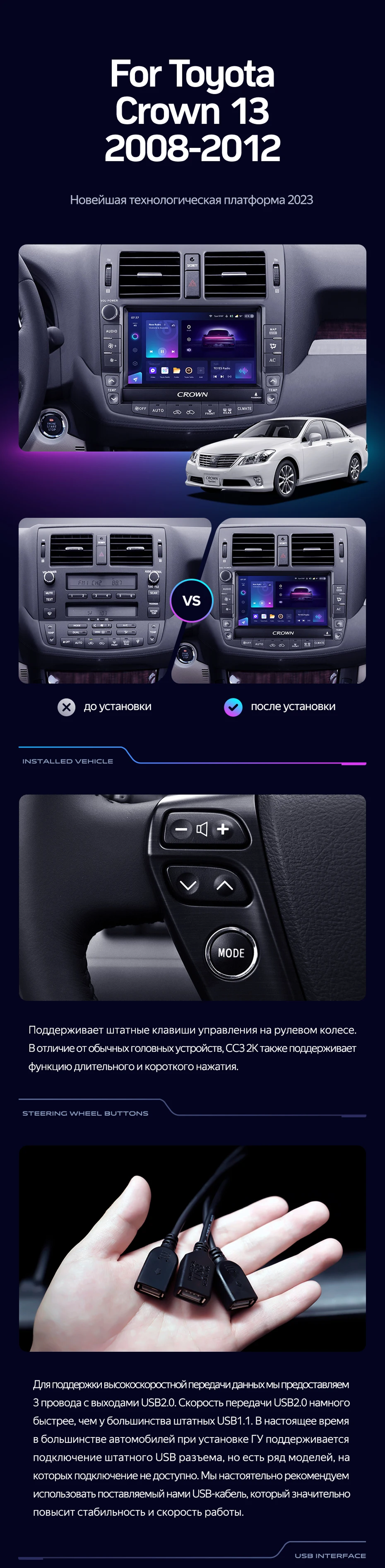 Штатная магнитола Teyes CC3L WiFi 2/32 Toyota Crown 13 S200 (2008-2012) Тип-B - купить всего за 20 800 руб. в интернет-магазине в Волгограде Teyes.com.ru. ✓ Самый лучший выбор мультимедиа ✓ Лучшая замена штатному ГУ ✓ Тел. +7 (800) 775-31-74
