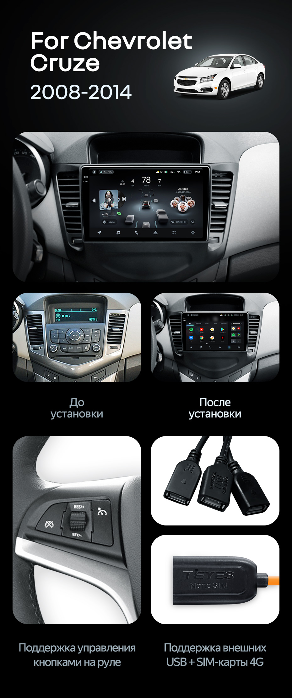 Штатная магнитола Teyes CC4 Pro 12/256 Chevrolet Cruze J300 (2008-2014) - купить всего за 66 620 руб. в интернет-магазине в Волгограде Teyes.com.ru. ✓ Самый лучший выбор мультимедиа ✓ Лучшая замена штатному ГУ ✓ Тел. +7 (800) 775-31-74