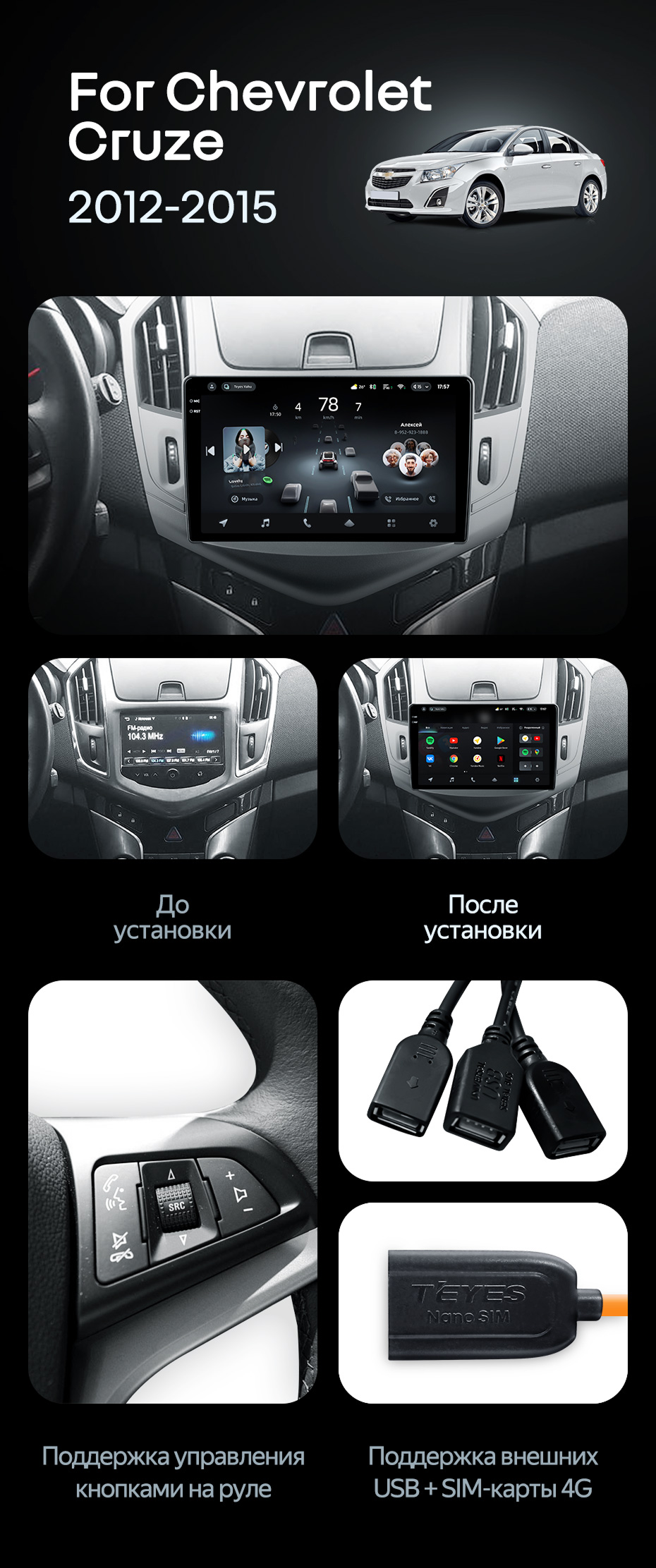 Штатная магнитола Teyes CC4 Pro 12/256 Chevrolet Cruze J300 J308 (2012-2015) F1 - купить всего за 66 530 руб. в интернет-магазине в Волгограде Teyes.com.ru. ✓ Самый лучший выбор мультимедиа ✓ Лучшая замена штатному ГУ ✓ Тел. +7 (800) 775-31-74