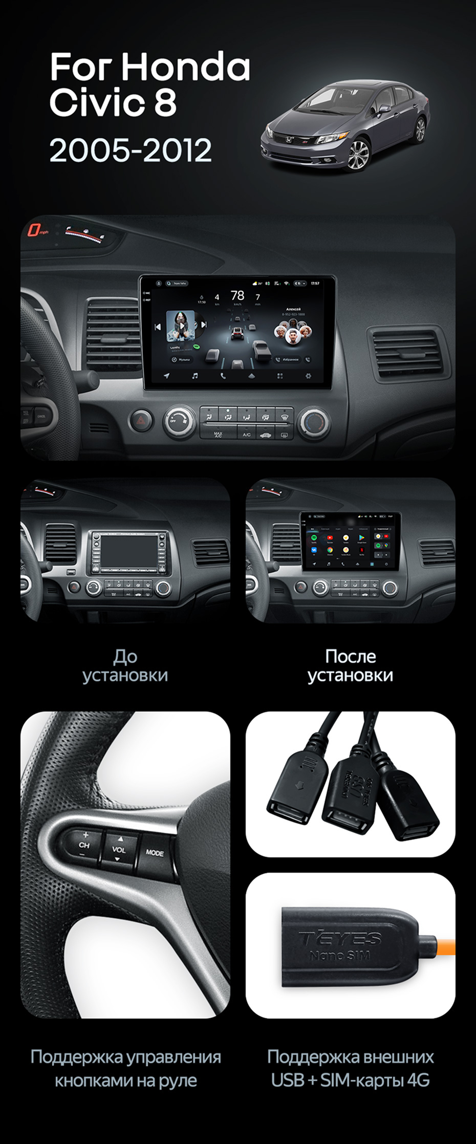Штатная магнитола Teyes CC4 Pro 12/256 Honda Civic 8 FK FN FD (2005-2012) - купить всего за 66 300 руб. в интернет-магазине в Волгограде Teyes.com.ru. ✓ Самый лучший выбор мультимедиа ✓ Лучшая замена штатному ГУ ✓ Тел. +7 (800) 775-31-74