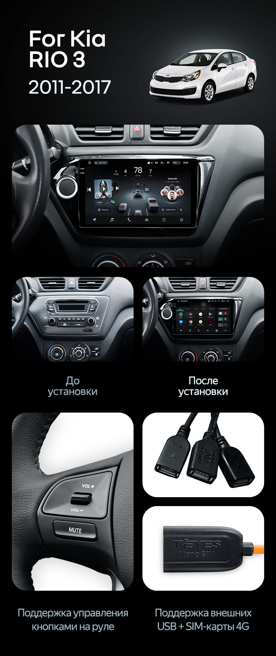 Штатная магнитола Teyes CC4 Pro 12/256 Kia Rio 3 (2011-2017) - купить всего за 73 130 руб. в интернет-магазине в Волгограде Teyes.com.ru. ✓ Самый лучший выбор мультимедиа ✓ Лучшая замена штатному ГУ ✓ Тел. +7 (800) 775-31-74