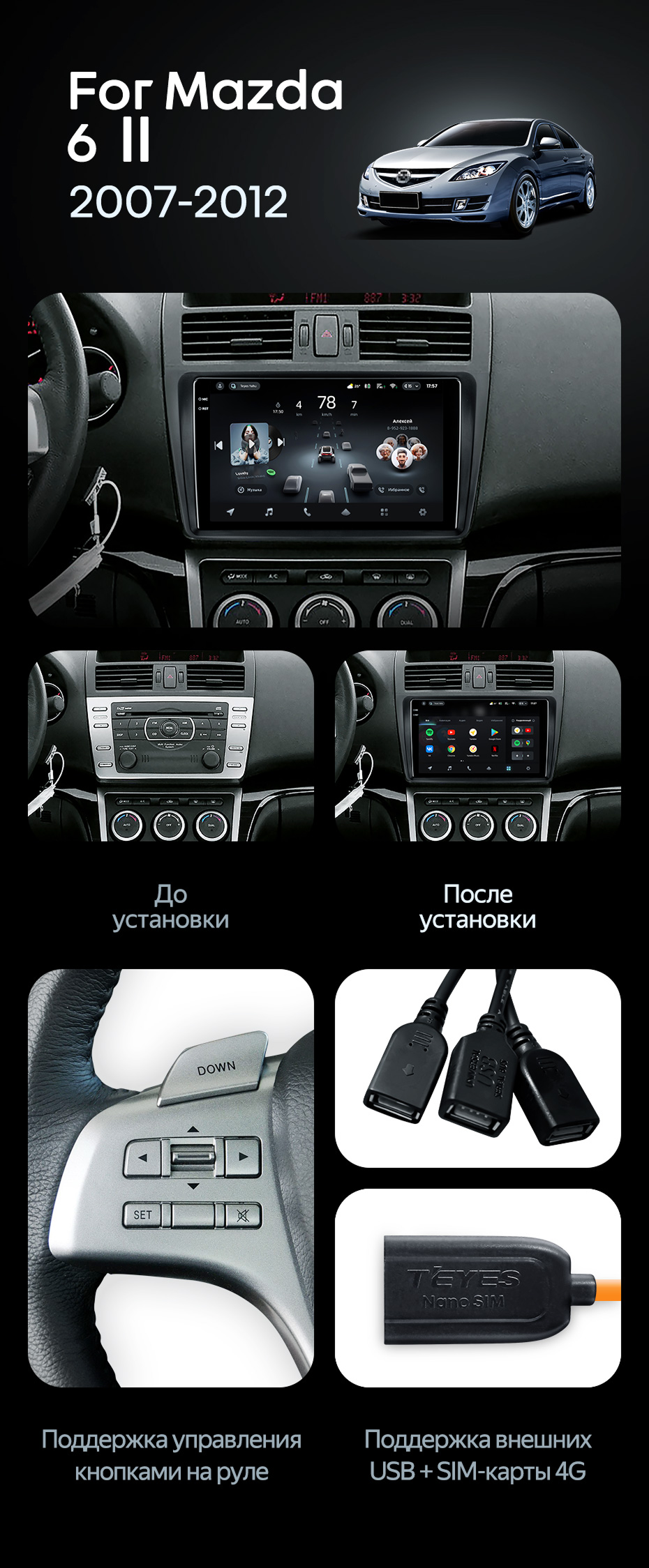 Штатная магнитола Teyes CC4 Pro 12/256 Mazda 6 2 GH (2007-2012) - купить всего за 73 660 руб. в интернет-магазине в Волгограде Teyes.com.ru. ✓ Самый лучший выбор мультимедиа ✓ Лучшая замена штатному ГУ ✓ Тел. +7 (800) 775-31-74