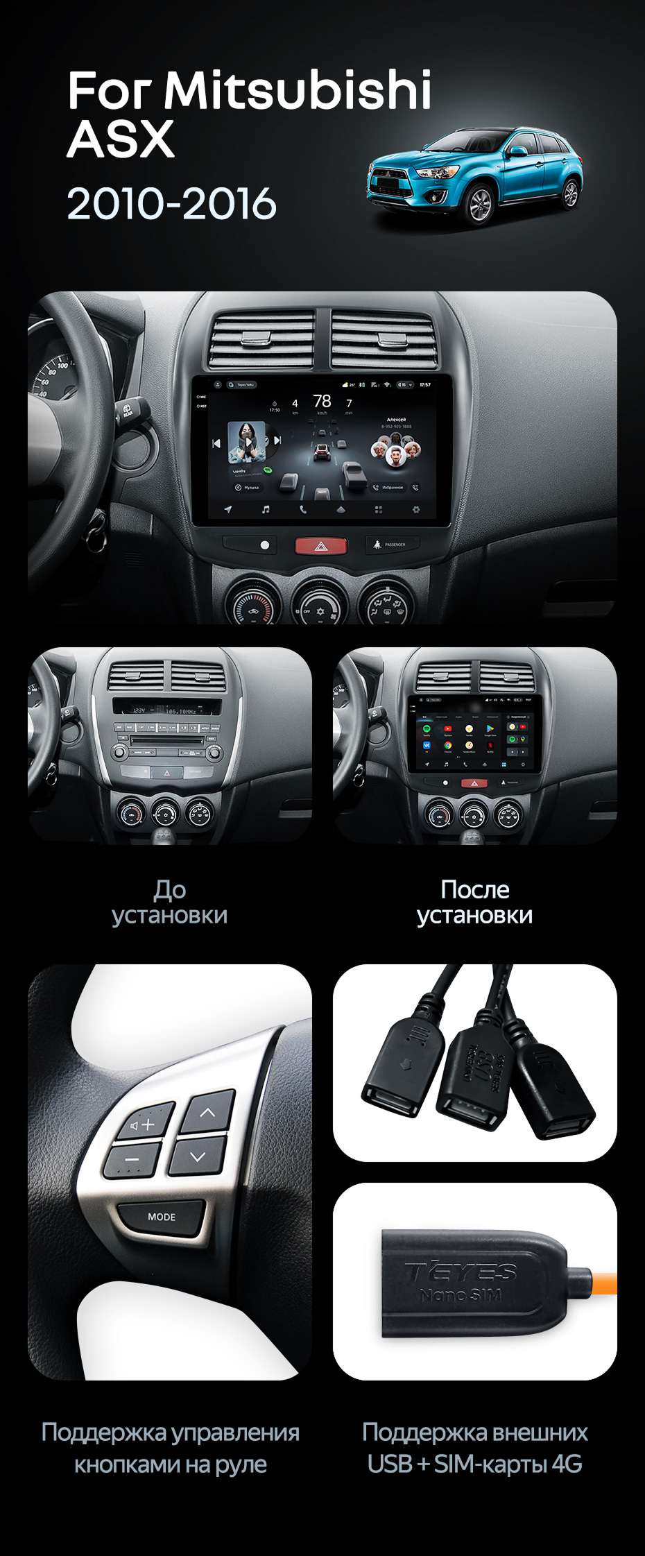 Штатная магнитола Teyes CC4 Pro 12/256 Mitsubishi ASX 1 (2010-2016) Тип-A - купить всего за 73 000 руб. в интернет-магазине в Волгограде Teyes.com.ru. ✓ Самый лучший выбор мультимедиа ✓ Лучшая замена штатному ГУ ✓ Тел. +7 (800) 775-31-74