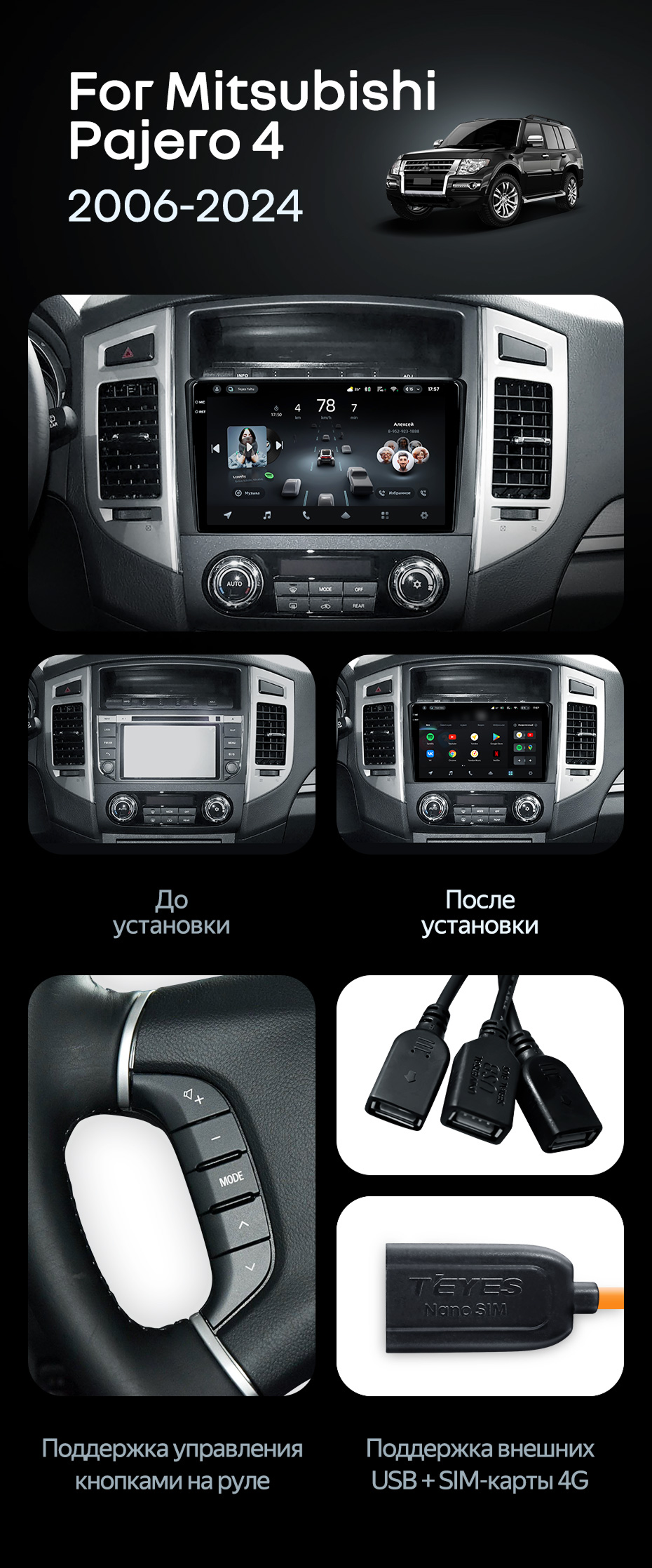 Штатная магнитола Teyes CC4 Pro 12/256 Mitsubishi Pajero 4 V80 V90 (2006-2024) - купить всего за 73 850 руб. в интернет-магазине в Волгограде Teyes.com.ru. ✓ Самый лучший выбор мультимедиа ✓ Лучшая замена штатному ГУ ✓ Тел. +7 (800) 775-31-74