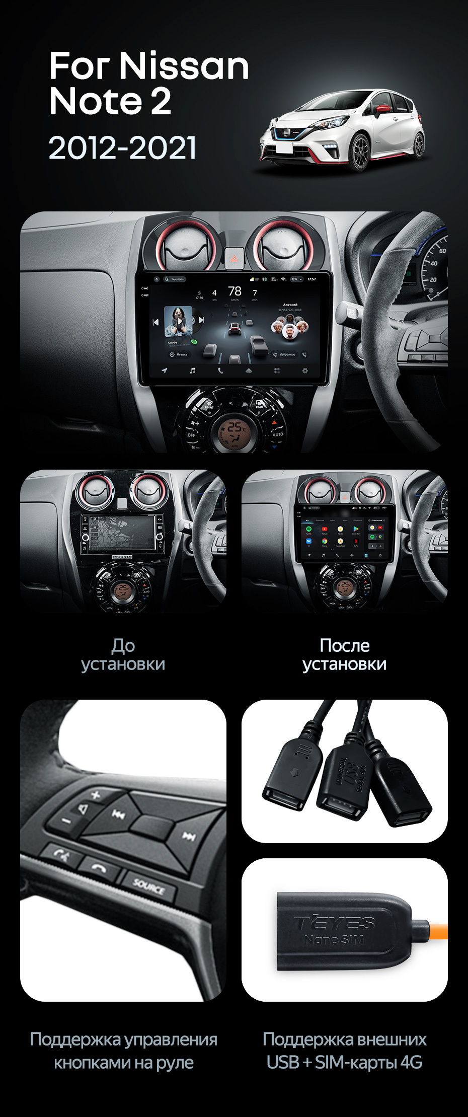 Штатная магнитола Teyes CC4 Pro 12/256 Nissan Note 2 E12 (2012-2021) - купить всего за 73 300 руб. в интернет-магазине в Волгограде Teyes.com.ru. ✓ Самый лучший выбор мультимедиа ✓ Лучшая замена штатному ГУ ✓ Тел. +7 (800) 775-31-74