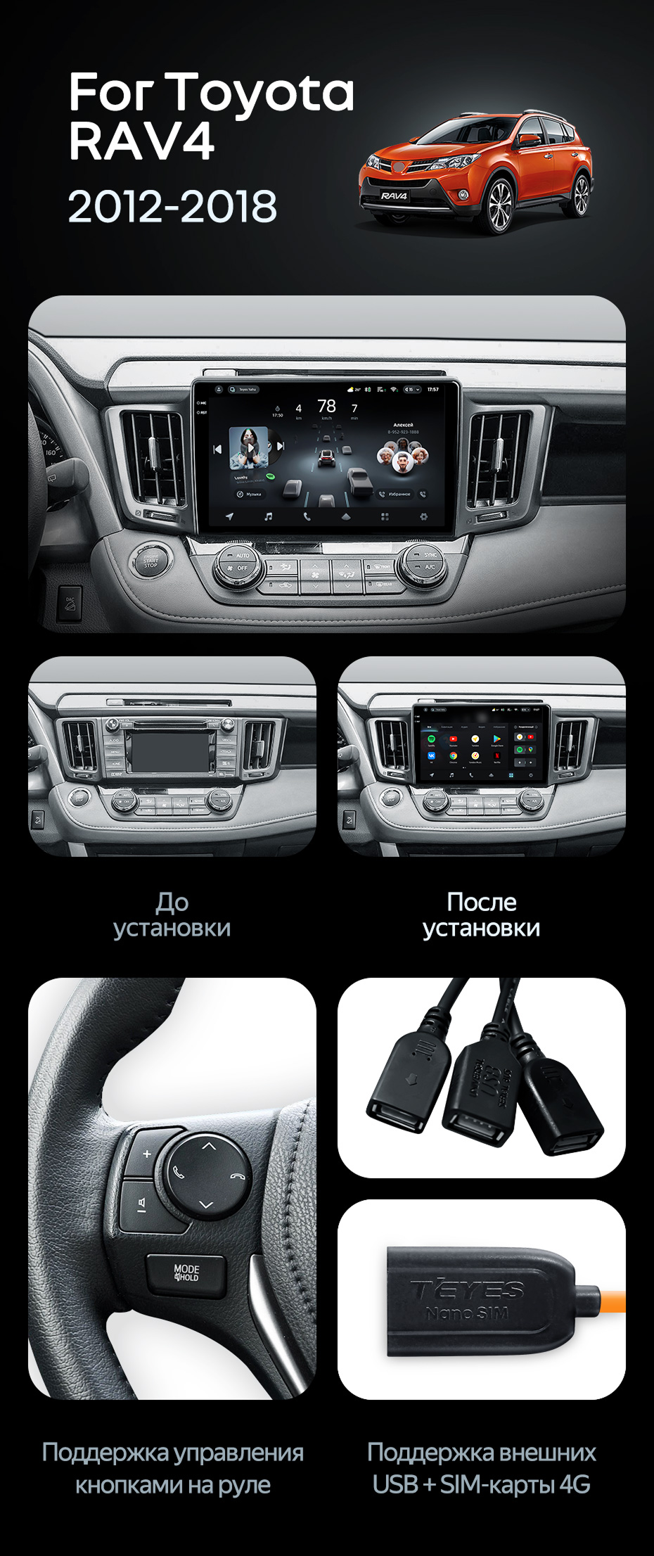 Штатная магнитола Teyes CC4 Pro 12/256 Toyota RAV4 (2012-2018) - купить всего за 73 440 руб. в интернет-магазине в Волгограде Teyes.com.ru. ✓ Самый лучший выбор мультимедиа ✓ Лучшая замена штатному ГУ ✓ Тел. +7 (800) 775-31-74