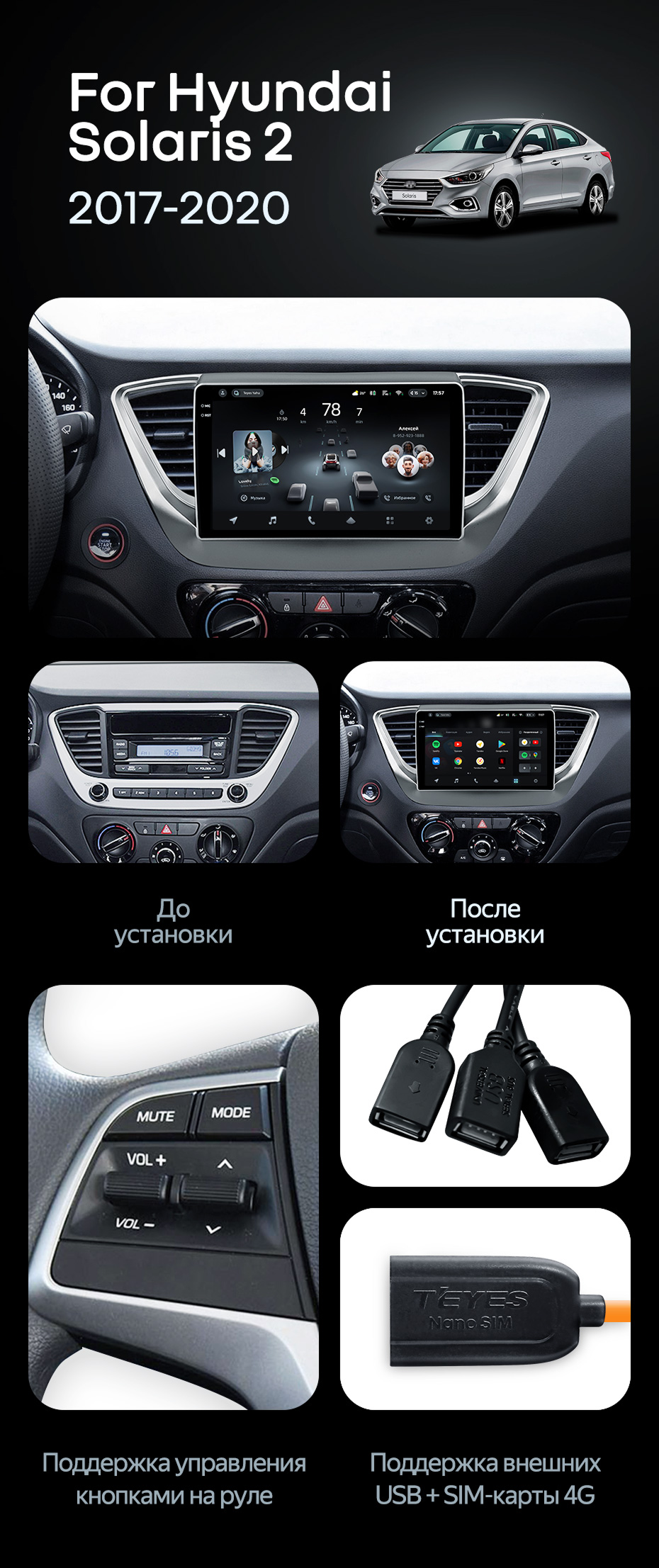 Штатная магнитола Teyes CC4 Pro 8/128 Hyundai Solaris 2 (2017-2020) F1 Тип-A - купить всего за 55 480 руб. в интернет-магазине в Волгограде Teyes.com.ru. ✓ Самый лучший выбор мультимедиа ✓ Лучшая замена штатному ГУ ✓ Тел. +7 (800) 775-31-74