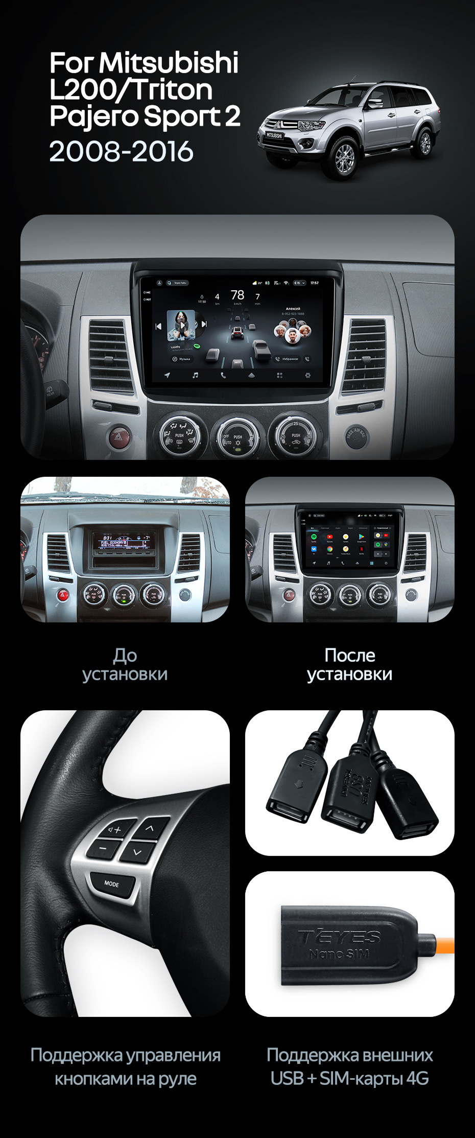 Штатная магнитола Teyes CC4 Pro 8/128 Mitsubishi L200 (2008-2016) - купить всего за 56 200 руб. в интернет-магазине в Волгограде Teyes.com.ru. ✓ Самый лучший выбор мультимедиа ✓ Лучшая замена штатному ГУ ✓ Тел. +7 (800) 775-31-74