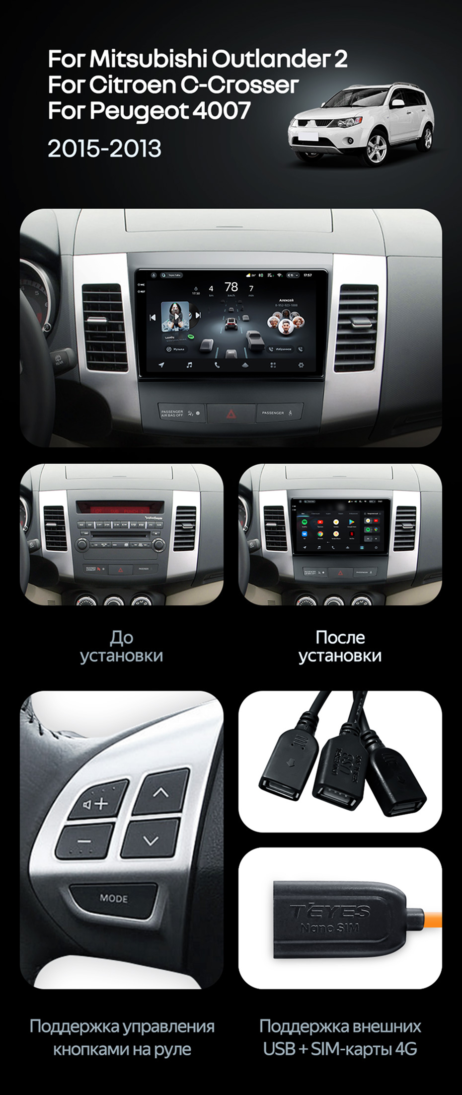 Штатная магнитола Teyes CC4 Pro 8/128 Mitsubishi Outlander 2 (2005-2011) Тип-B - купить всего за 55 740 руб. в интернет-магазине в Волгограде Teyes.com.ru. ✓ Самый лучший выбор мультимедиа ✓ Лучшая замена штатному ГУ ✓ Тел. +7 (800) 775-31-74