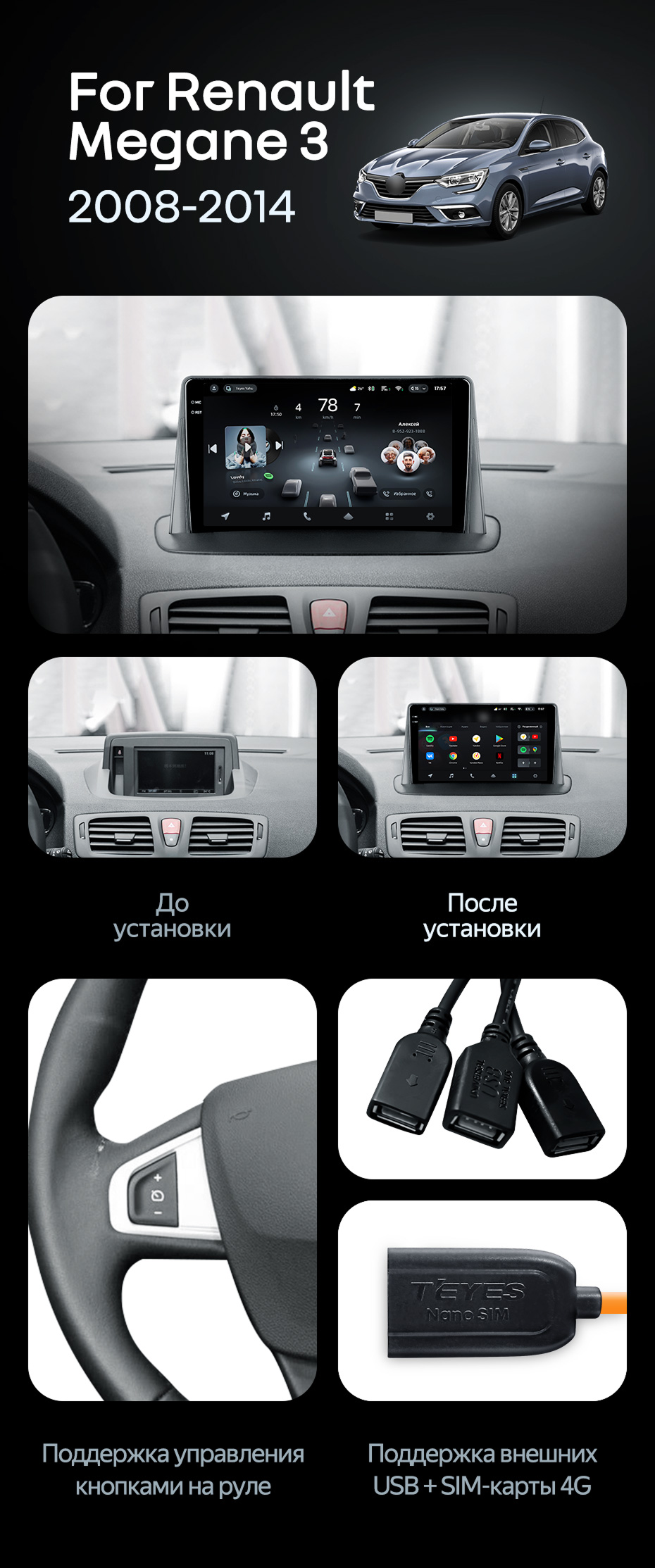 Штатная магнитола Teyes CC4 Pro 8/128 Renault Megane 3 (2008-2014) - купить всего за 65 440 руб. в интернет-магазине в Волгограде Teyes.com.ru. ✓ Самый лучший выбор мультимедиа ✓ Лучшая замена штатному ГУ ✓ Тел. +7 (800) 775-31-74