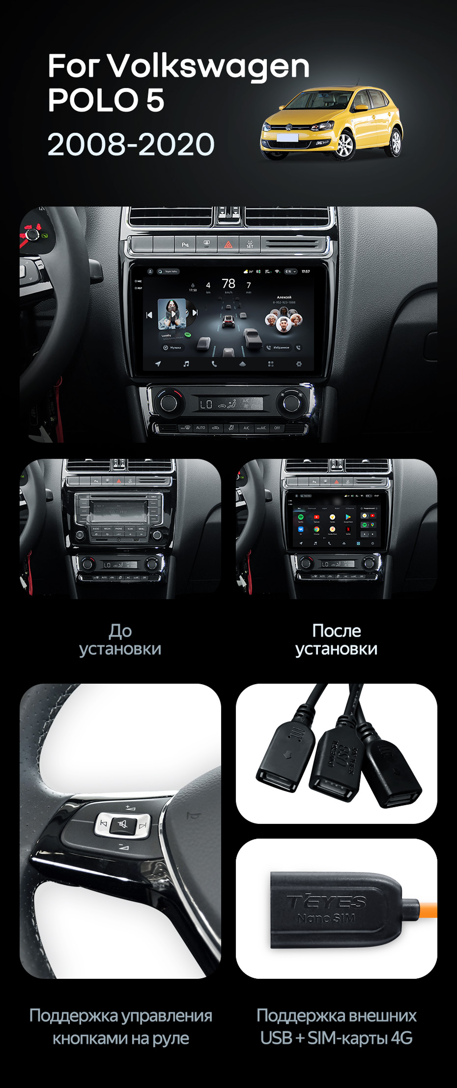 Штатная магнитола Teyes CC4L 6/64 Volkswagen Polo 5 (2008-2020) F1 - купить всего за 30 910 руб. в интернет-магазине в Волгограде Teyes.com.ru. ✓ Самый лучший выбор мультимедиа ✓ Лучшая замена штатному ГУ ✓ Тел. +7 (800) 775-31-74