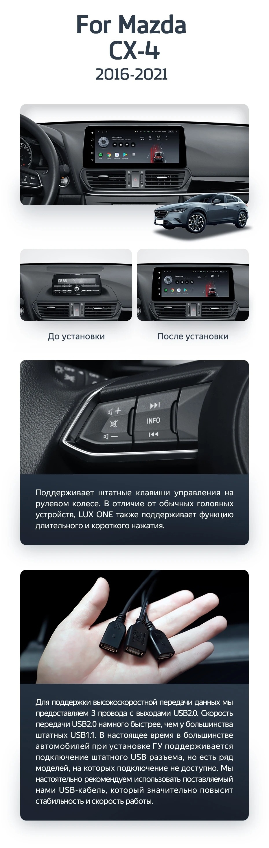 Штатная магнитола Teyes LUX ONE 360 6/128 Mazda CX-4 (2016-2021) Тип-A - купить всего за 71 400 руб. в интернет-магазине в Волгограде Teyes.com.ru. ✓ Самый лучший выбор мультимедиа ✓ Лучшая замена штатному ГУ ✓ Тел. +7 (800) 775-31-74