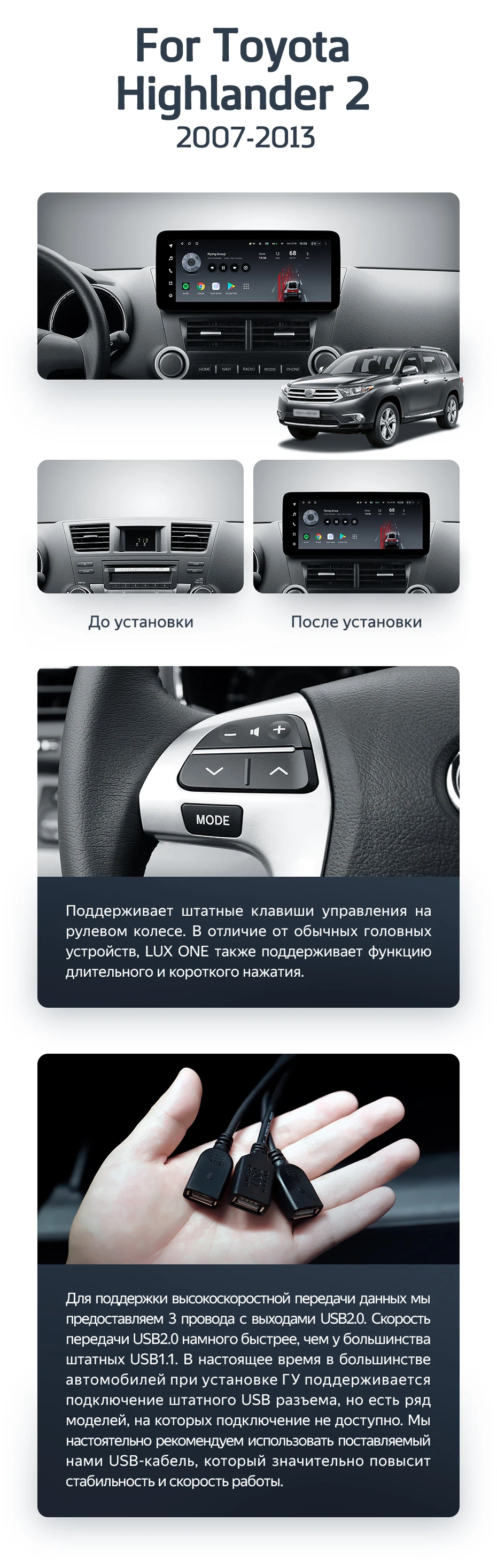 Штатная магнитола Teyes LUX ONE 360 6/128 Toyota Highlander 2 XU40 (2007-2013) - купить всего за 64 600 руб. в интернет-магазине в Волгограде Teyes.com.ru. ✓ Самый лучший выбор мультимедиа ✓ Лучшая замена штатному ГУ ✓ Тел. +7 (800) 775-31-74
