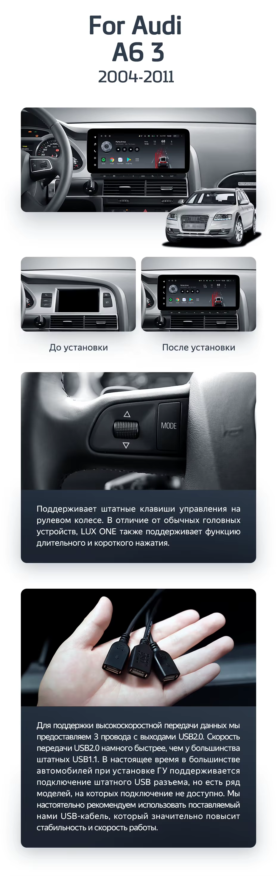 Штатная магнитола Teyes LUX ONE 4/32 Audi A6 3 C6 (2004-2011) - купить всего за 46 700 руб. в интернет-магазине в Волгограде Teyes.com.ru. ✓ Самый лучший выбор мультимедиа ✓ Лучшая замена штатному ГУ ✓ Тел. +7 (800) 775-31-74