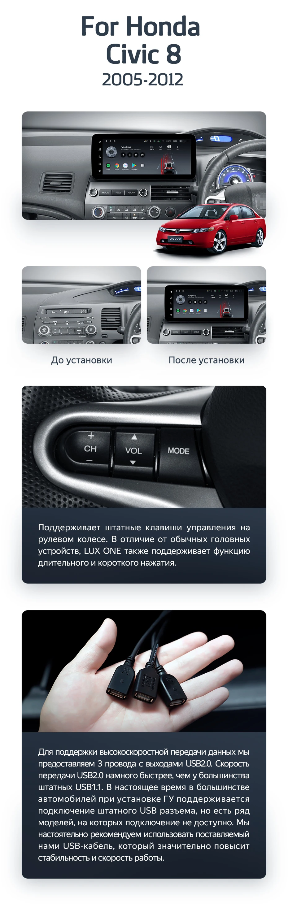 Штатная магнитола Teyes LUX ONE 6/128 Honda Civic 8 FK FN FD (2005-2012) Правый руль - купить всего за 50 500 руб. в интернет-магазине в Волгограде Teyes.com.ru. ✓ Самый лучший выбор мультимедиа ✓ Лучшая замена штатному ГУ ✓ Тел. +7 (800) 775-31-74