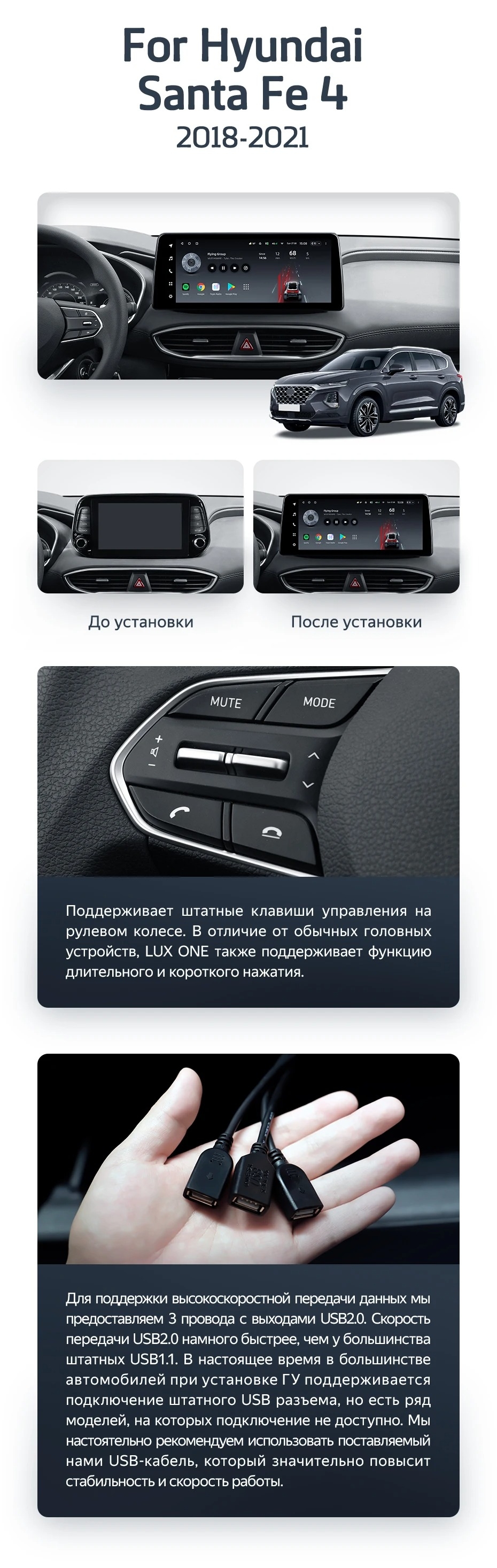 Штатная магнитола Teyes LUX ONE 6/128 Hyundai Santa Fe 4 (2018-2021) - купить всего за 49 700 руб. в интернет-магазине в Волгограде Teyes.com.ru. ✓ Самый лучший выбор мультимедиа ✓ Лучшая замена штатному ГУ ✓ Тел. +7 (800) 775-31-74