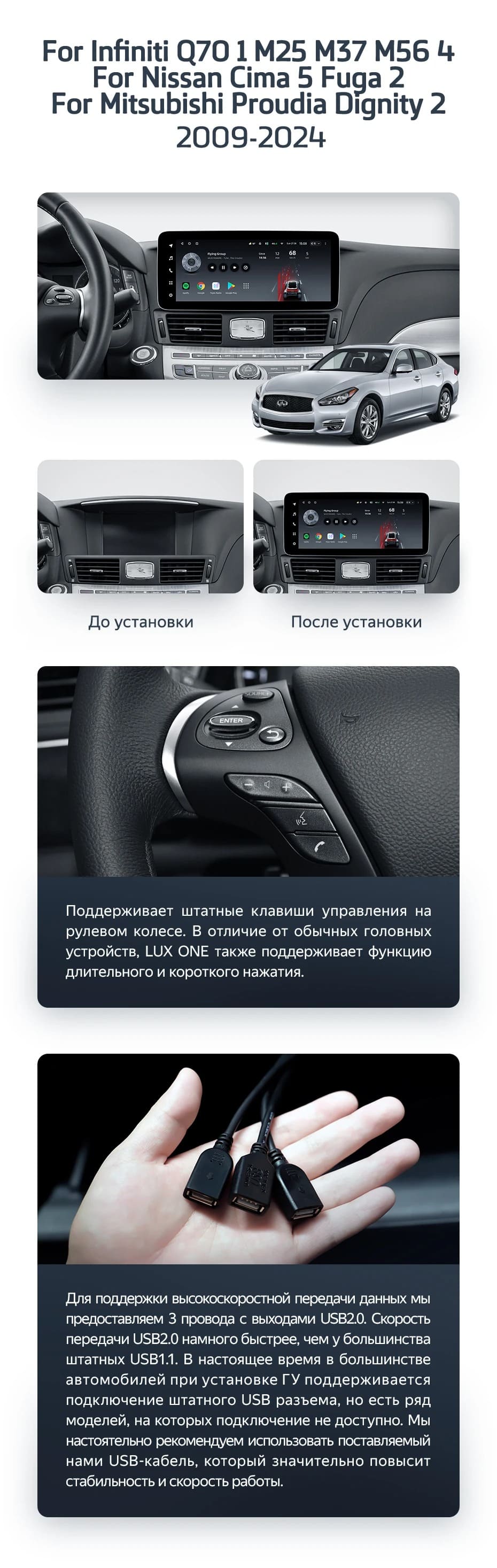 Штатная магнитола Teyes LUX ONE 6/128 Infiniti Q70 1 M25 M37 M56 4 (2009-2024) Тип-B - купить всего за 57 500 руб. в интернет-магазине в Волгограде Teyes.com.ru. ✓ Самый лучший выбор мультимедиа ✓ Лучшая замена штатному ГУ ✓ Тел. +7 (800) 775-31-74