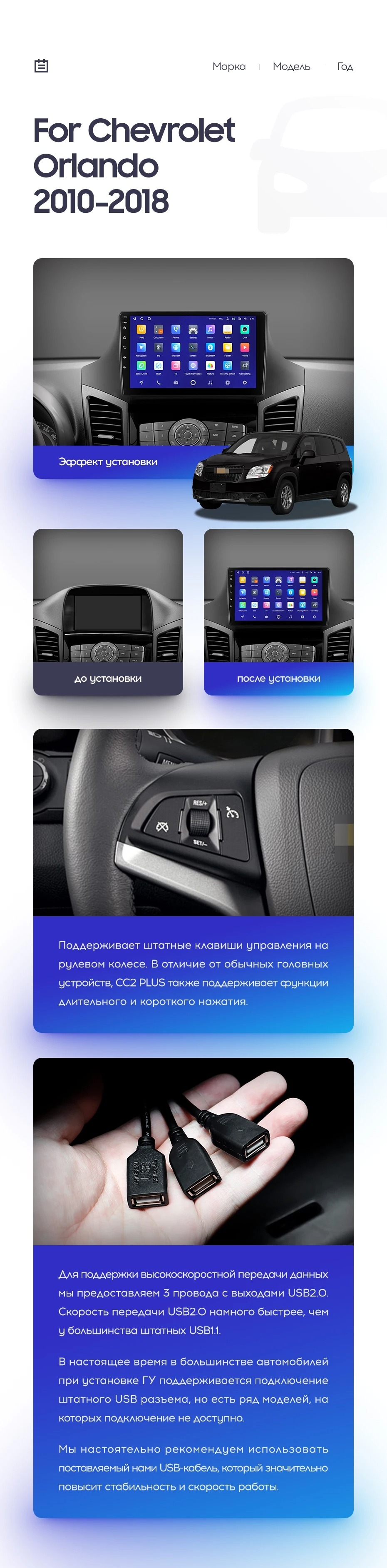 Полный комплект установки магнитолы Teyes с рамкой и проводкой можно выбрать в каталоге штатных магнитол Chevrolet Orlando (2010-2018).