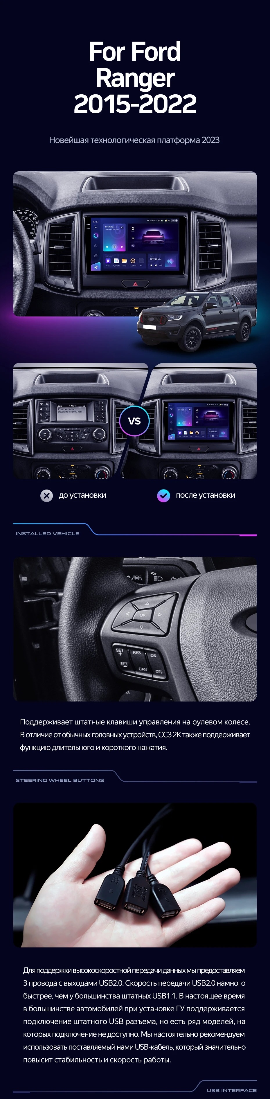 Переходная рамка Ford Ranger P703 (2015-2022) Тип-B (9") - купить всего за 5 600 руб. в интернет-магазине в Волгограде Teyes.com.ru. ✓ Самый лучший выбор мультимедиа ✓ Лучшая замена штатному ГУ ✓ Тел. +7 (800) 775-31-74