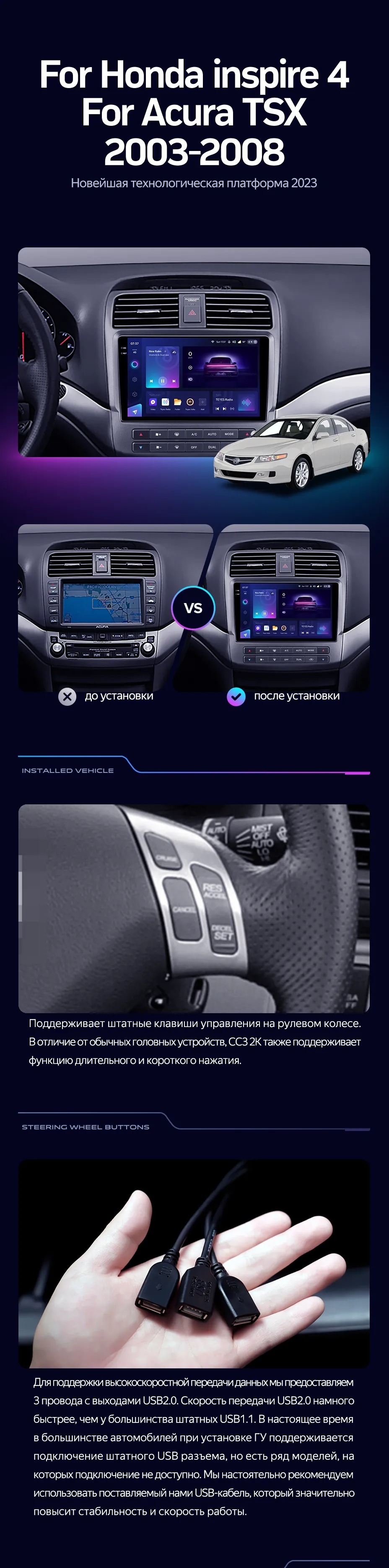 Полный комплект установки магнитолы Teyes с рамкой и проводкой можно выбрать в каталоге штатных магнитол Acura TSX (2003-2008).