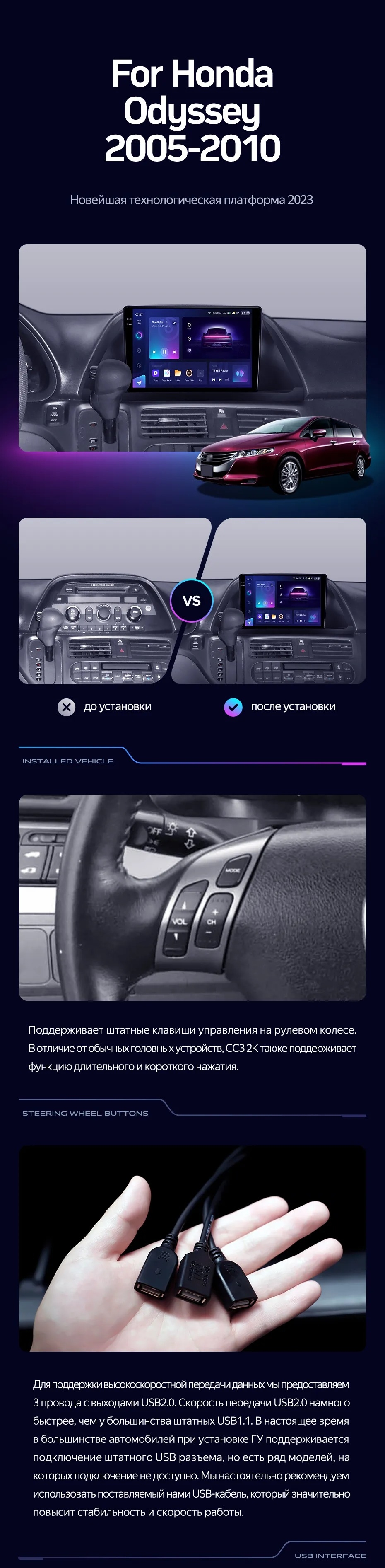 Полный комплект установки магнитолы Teyes с рамкой и проводкой можно выбрать в каталоге штатных магнитол Honda Odyssey (2005-2010) (US EDITION).