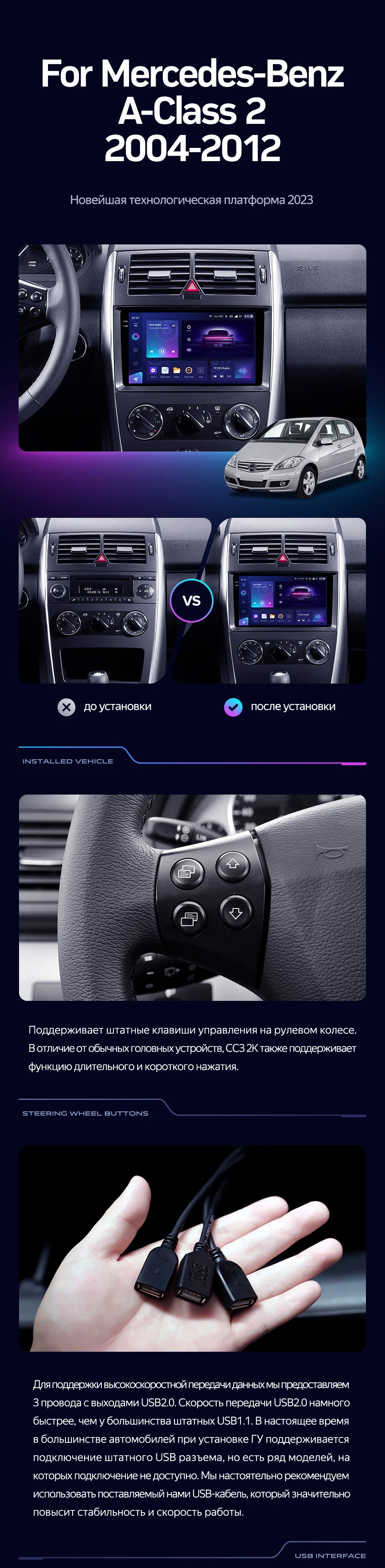 Полный комплект установки магнитолы Teyes с рамкой и проводкой можно выбрать в каталоге штатных магнитол Mercedes-Benz A-Class 2 W169 C169 (2004-2012).