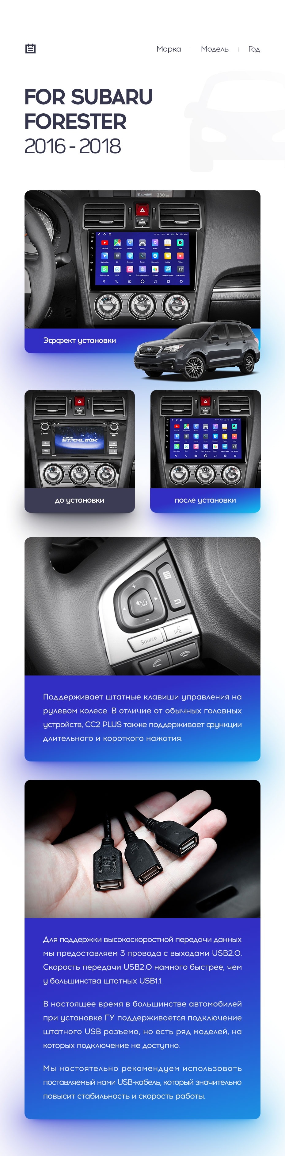 Полный комплект установки магнитолы Teyes с рамкой и проводкой можно выбрать в каталоге штатных магнитол Subaru Forester SJ (2015-2018).