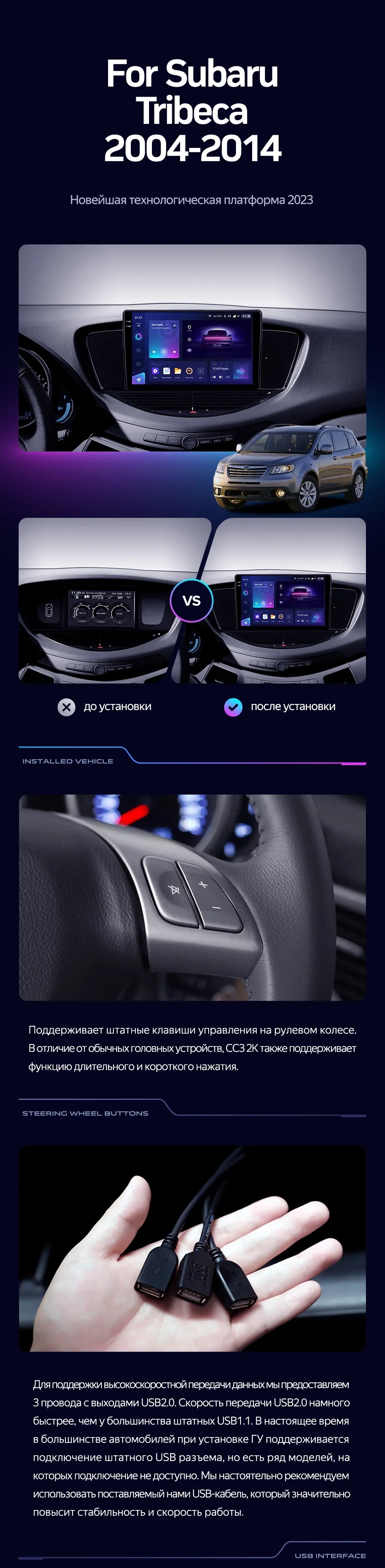 Полный комплект установки магнитолы Teyes с рамкой и проводкой можно выбрать в каталоге штатных магнитол Subaru Tribeca WX W10 (2004-2014).